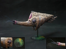 Cogemos un trozo de alambre y le pegamos un zurullo de masilla verde, una vez tenga la forma adecuada le pasamos un texturizador, luego en la mitad inferior le hacemos igual que si fuera pelo, con lo que tendremos algo parecido a unos tentaculillos y a la guerra. Es un excelente método de fabricación en serie, obtenemos unas criaturitas de unos 3-4 milímetros que dan bastante el pego.